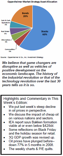 To us it appeared that investors reacted to OPEC’s decision this weekend interpreting the organization’s message as saying “let the market decide where the price of oil falls…let the cards fall as they may…”